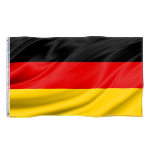 - PRODUKTINFO: Die 90x150cm große Deutschland Flagge ist ideal für den Innen- und Außeneinsatz geeignet und besteht aus 100% Polyester. Die Flagge besitzt zwei stabile integrierte Messing-Ösen